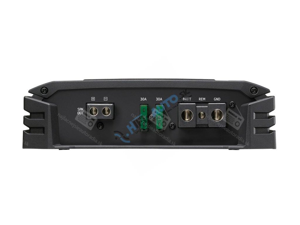 Na kanál pri 2 Ohmoch, 14.4V (≤1%THD+N): 1 x 600W