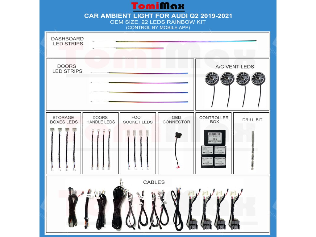 Vylepšite atmosféru vo vašom vozidle s 64-farebným ambientným podsvietením! Tento inovatívny systém s 5 zónami (celé auto, dvere, priestor pre nohy, úložný box a palubná doska) ponúka flexibilitu prispôsobenia farieb a režimov osvetlenia cez mobilnú aplikáciu (iOS a Android). Užite si rôzne režimy ako farebné pulzovanie, symfonické osvetlenie či režim hudby. Osvetlenie je jemné a šetrné k očiam, s nastaviteľným jasom a jednoduchou inštaláciou. Ultratenký dizajn, energetická úspornosť a skrytá inštalácia poskytujú štýlový a pohodlný zážitok z jazdy. Prispôsobte si svoje auto podľa vlastných predstáv!