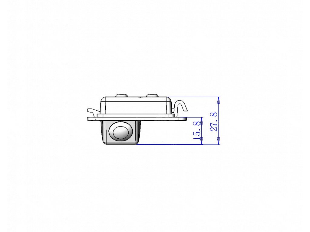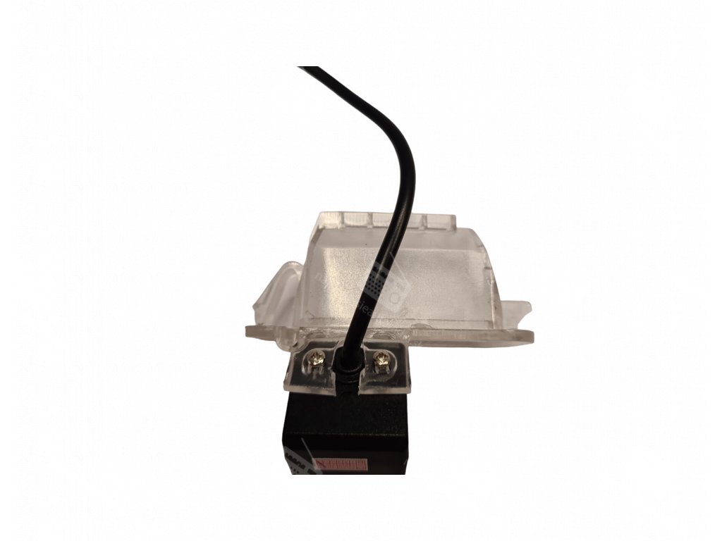 Farebná kamera s LED osvetlením pre ŠPZ. Je určená pre zabudovanie do osvetlenia nad zadnú registračnú značku. Jednoducho vymení za pôvodné osvetlenie EVČ pričom naďalej spĺňa funkciu osvetlenia. Kamera zároveň zobrazuje pomocné trajektórie pre parkovanie. Pre originálny design západné priamo na určený model automobilu. Disponuje veľkým 170° uhlom. Video signál z kamery je vyvedený na 6m kábli s RCA koncovkami.