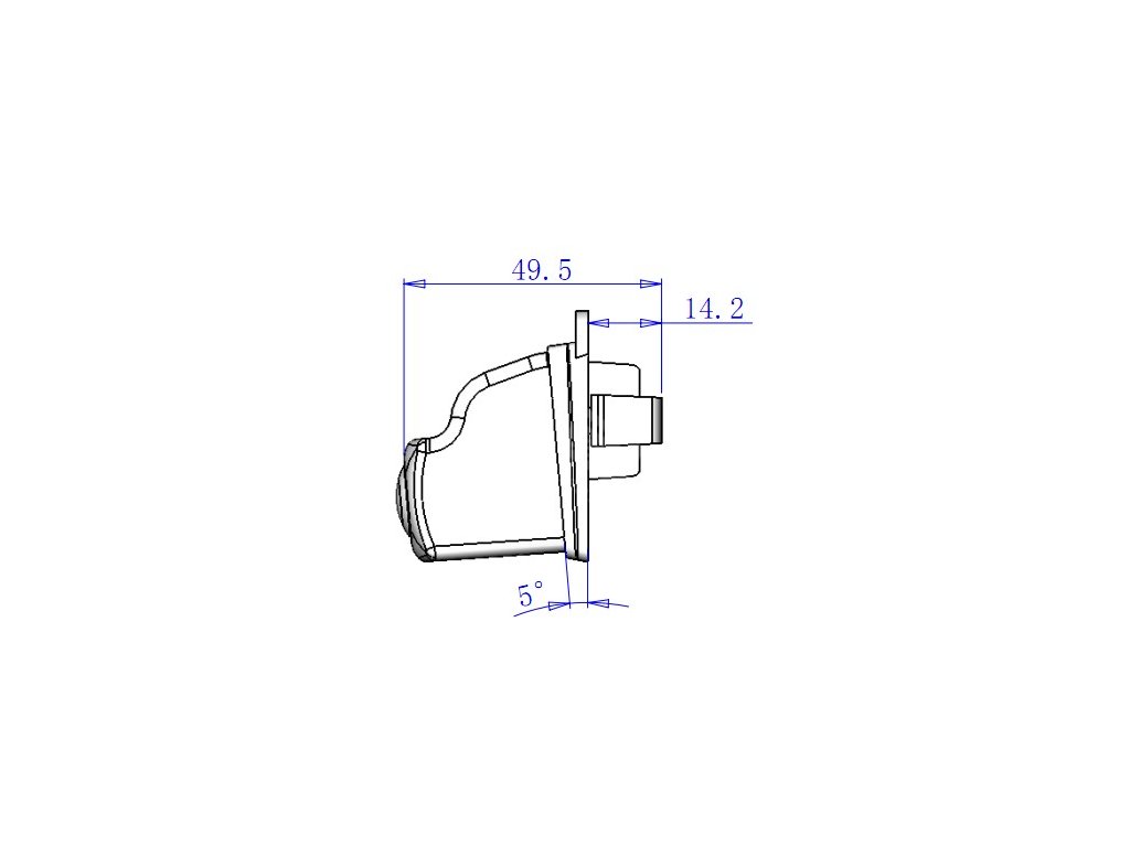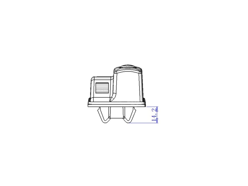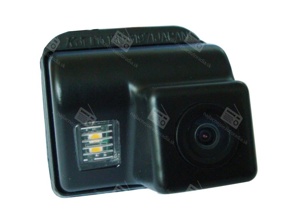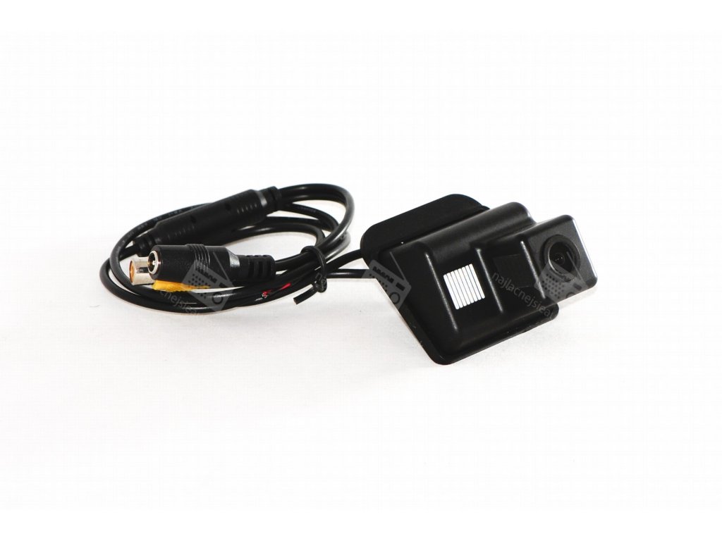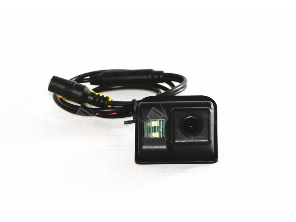 Farebná kamera s LED osvetlením pre ŠPZ. Je určená pre zabudovanie do osvetlenia nad zadnú registračnú značku. Kamera zároveň zobrazuje pomocné trajektórie pre parkovanie. Pre originálny design západné priamo na určený model automobilu. Disponuje veľkým 170° uhlom. Video signál z kamery je vyvedený na 6m kábli s RCA koncovkami.