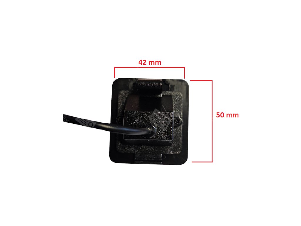 Farebná kamera s LED osvetlením pre ŠPZ. Je určená pre zabudovanie do osvetlenia nad zadnú registračnú značku. Kamera zároveň zobrazuje pomocné trajektórie pre parkovanie. Pre originálny design západné priamo na určený model automobilu. Disponuje veľkým 170° uhlom. Video signál z kamery je vyvedený na 6m kábli s RCA koncovkami.