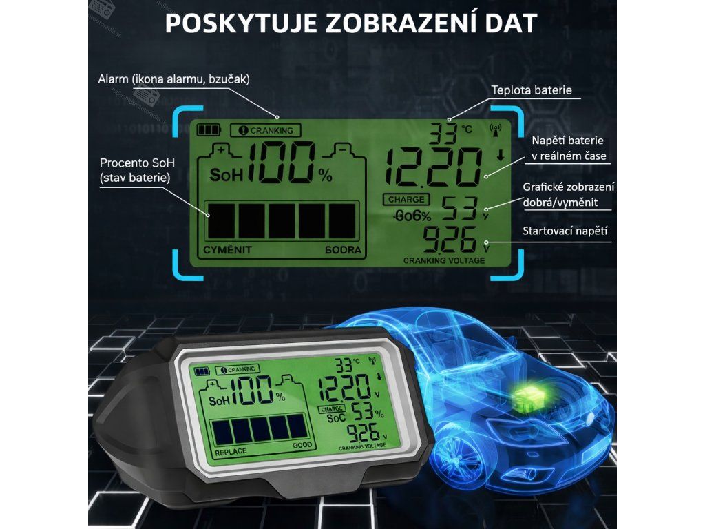 Monitoring batérie CARCLEVER s displejom 12V