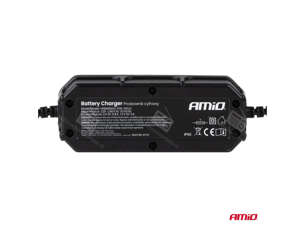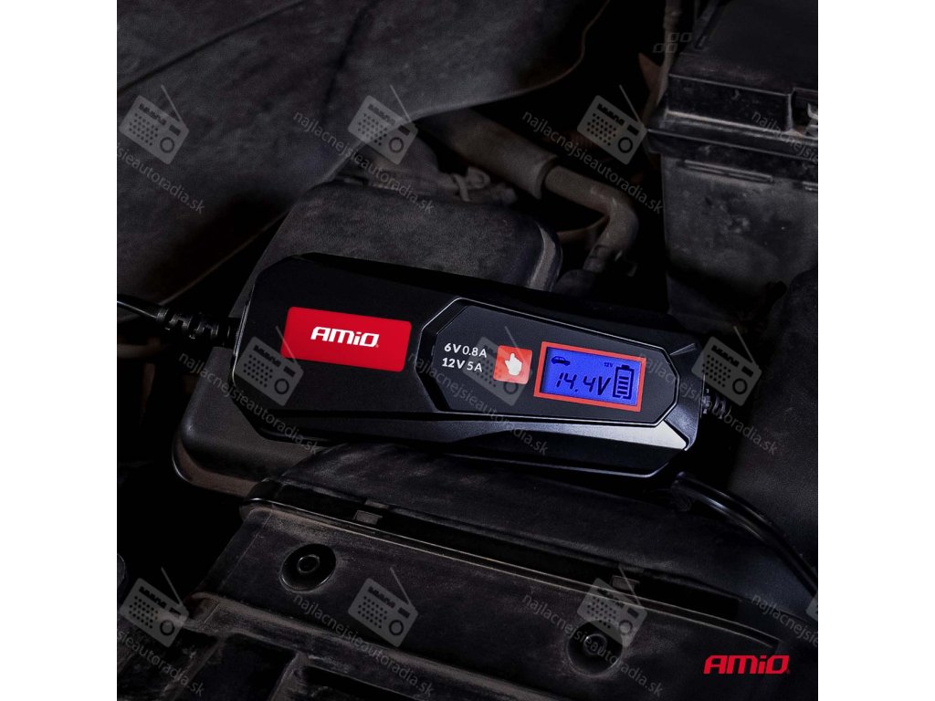 Digitálna nabíjačka AMiO je spoľahlivé a ľahko použiteľné zariadenie, ideálne na nabíjanie batérií v autách, motocykloch, lodiach alebo skladových zariadeniach, ktoré zaisťuje dlhú životnosť batérie a plnú kontrolu nad procesom nabíjania.
