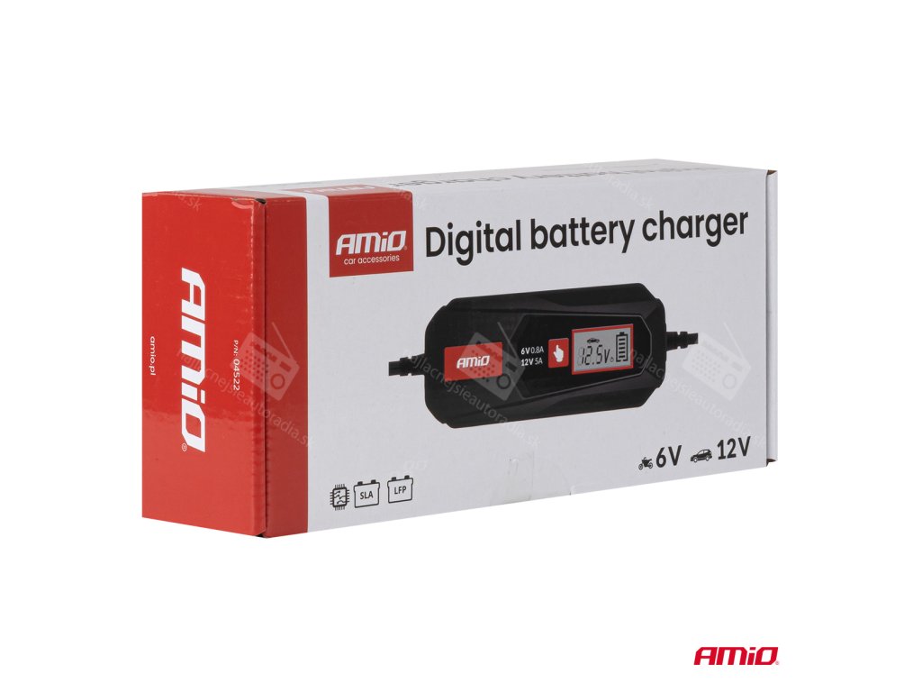 Digitálna nabíjačka AMiO je moderné zariadenie na nabíjanie olovených (SLA) a lítium-železo-fosfátových (LFP) batérií. Vďaka presnému digitálnemu riadeniu nabíjania zaisťuje bezpečné a efektívne nabíjanie 6V alebo 12V batérií . Táto základná nabíjačka má funkciu udržiavania napätia. Je ideálna na nabíjanie motocyklových batérií a benzínových osobných automobilov a má tiež špeciálnu funkciu nabíjania batérií LFP.