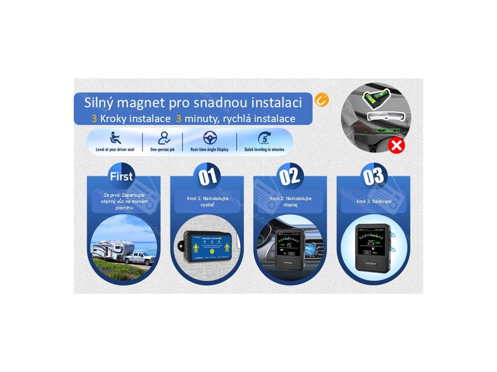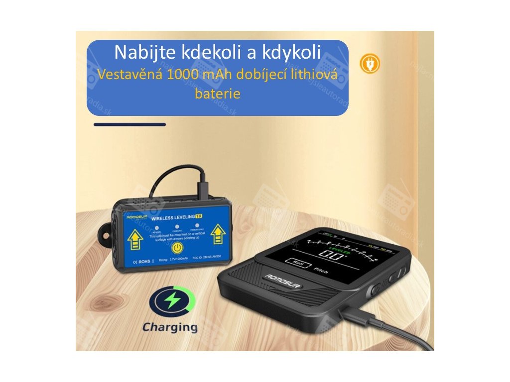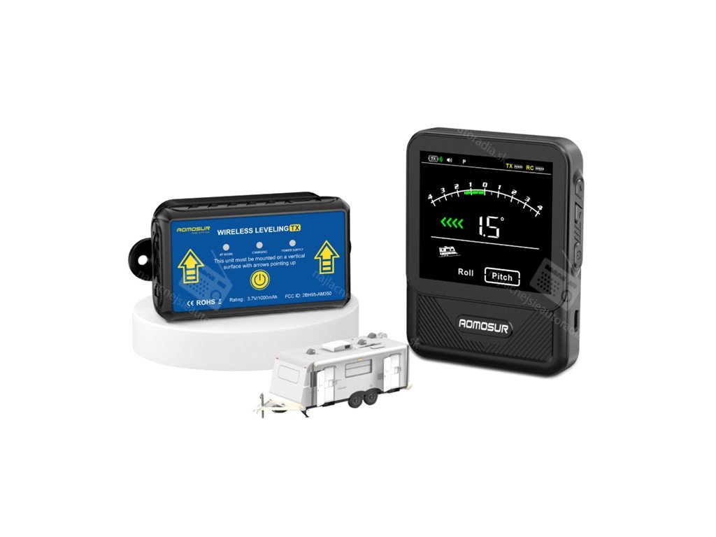 Náklonomer pre karavany s bezdrôtovým displejom je zariadenie určené na meranie náklonu vozidla, čo uľahčuje jeho presné vyrovnanie na nerovnom teréne.