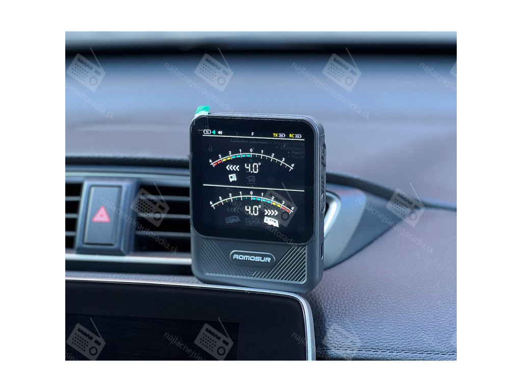 Displej: Prenosné zariadenie zobrazuje náklon v reálnom čase. Grafické rozhranie poskytuje vizuálne indikácie, ktoré uľahčujú rýchle vyrovnanie.