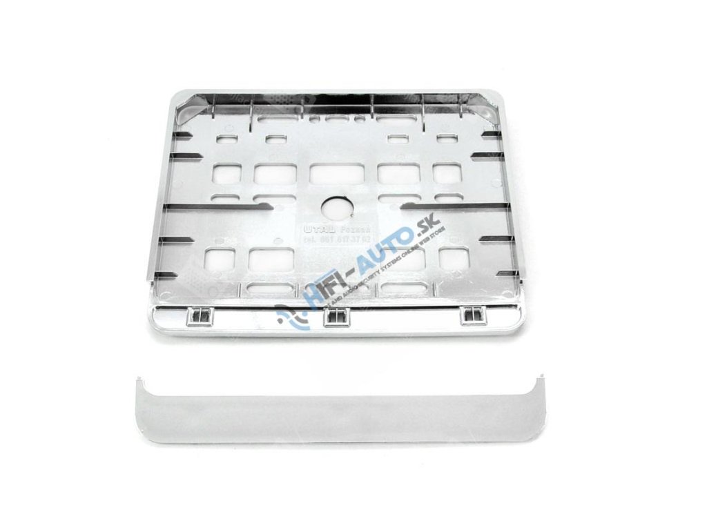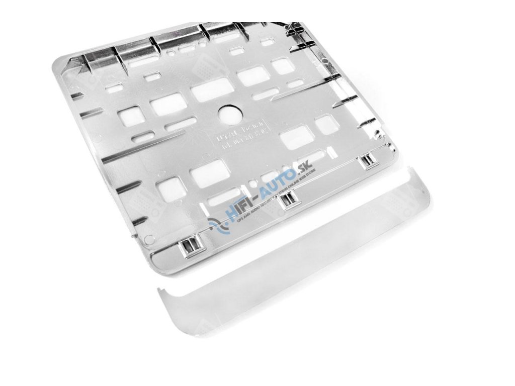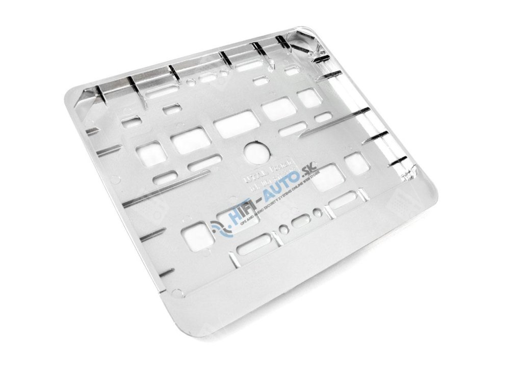 Podložka s pružného ohybného plastu pod štátnu poznávaciu značku alebo tabuľku registračnej značky, otvory pre univerzálnu montáž.