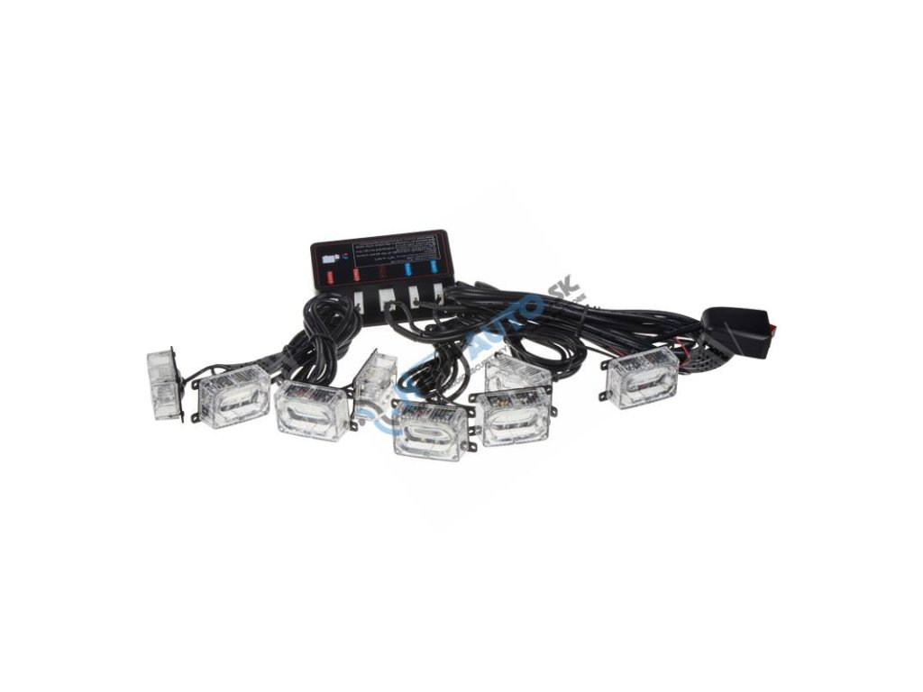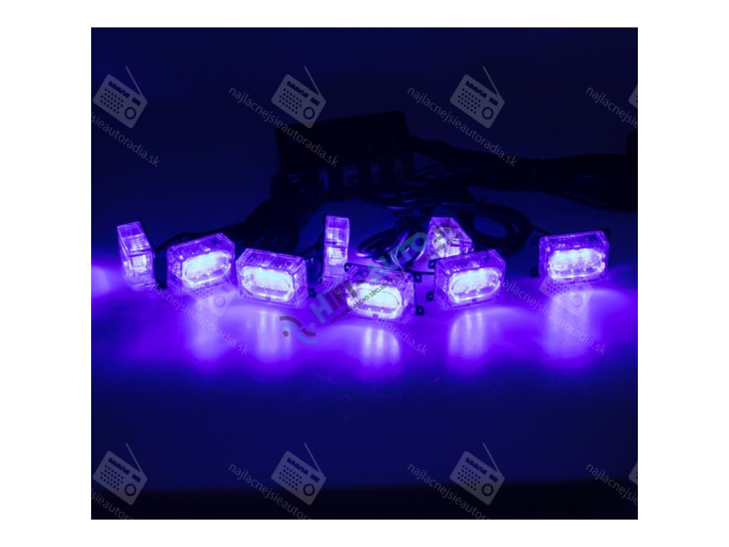 8 prídavných modrých výstražných LED svetiel pre externú povrchovúmontáž, predovšetkým do prednej mriežky vozidla.