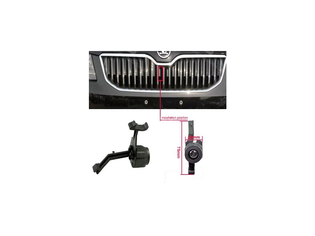 Farebná parkovacia kamera predná. Je určená pre zabudovanie do prednej masky vozidla Škoda Octavia od r. výroby 2015. Vhodné napr. pre kombináciu s monitorom, alebo s adaptérmi pre pripojenie k originálnej navigácii. Kamera zároveň zobrazuje pomocné trajektórie pre parkovanie.