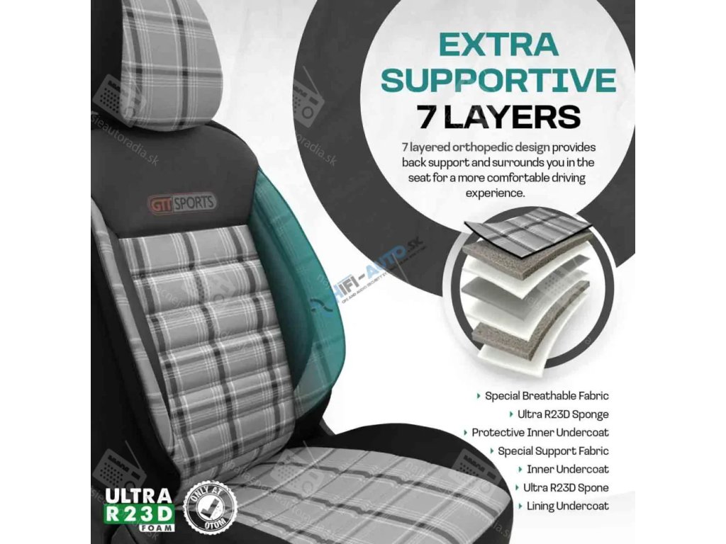 Výrobok je vyrobený z najkvalitnejších poťahových látok. Kombinácia najlepších materiálov a vysoká pozornosť venovaná detailom pri výrobe zaisťuje exkluzívny vzhľad a mimoriadnu odolnosť, ako aj vynikajúcu ochranu sedadiel pred nečistotami a odreninami.
