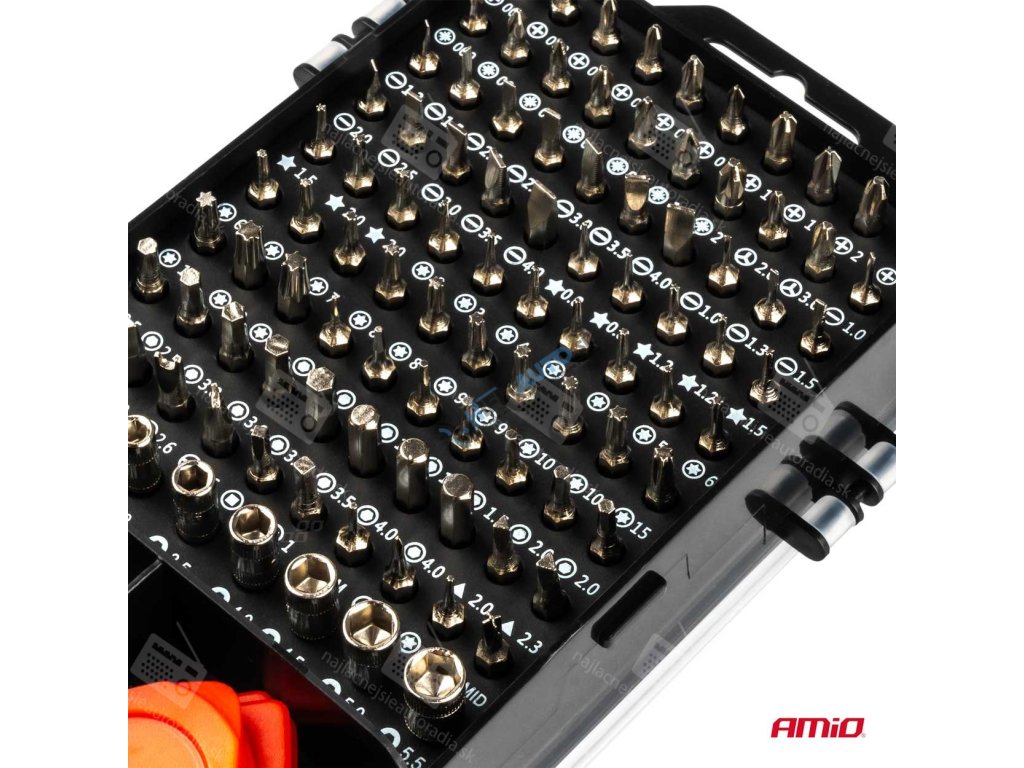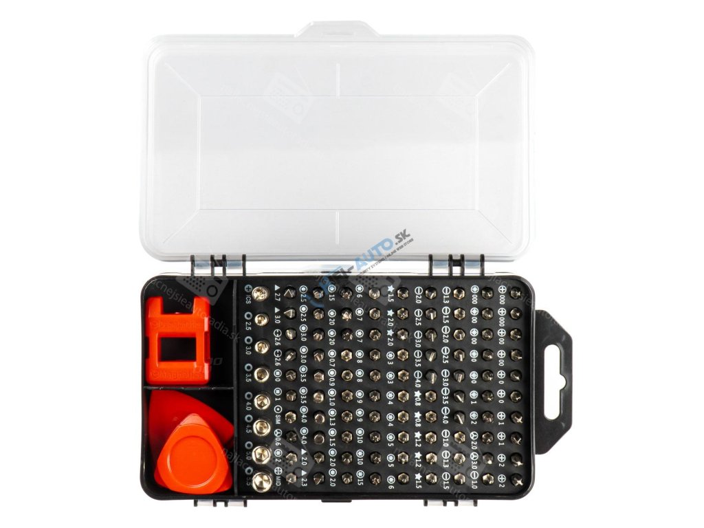 rozsiahla sada, sada obsahuje celkovo až 115 prvkov vrátane 98 vymeniteľných skrutkovačov