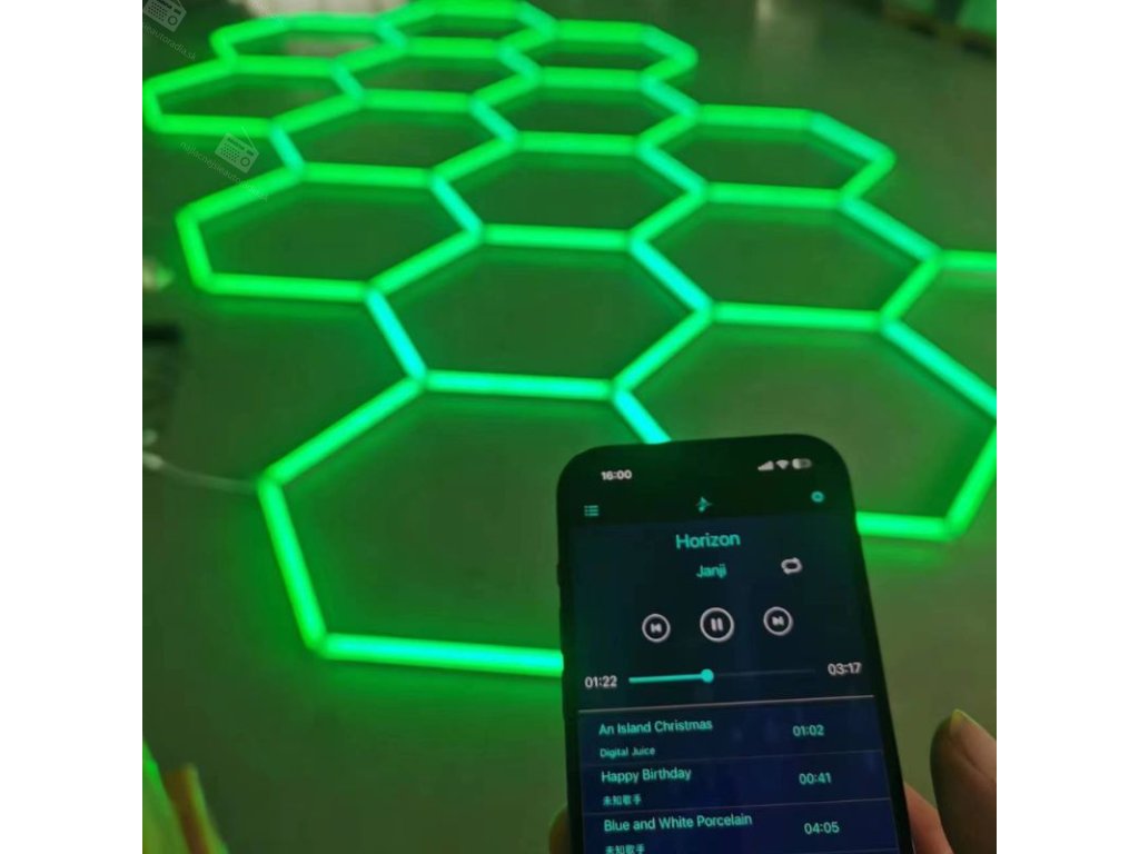 Modulárny systém umožňuje spájanie viacerých hexagonov do vlastných tvarov a vzorov. RGB osvetlenie dodáva priestoru dynamiku a jedinečný vizuálny charakter.