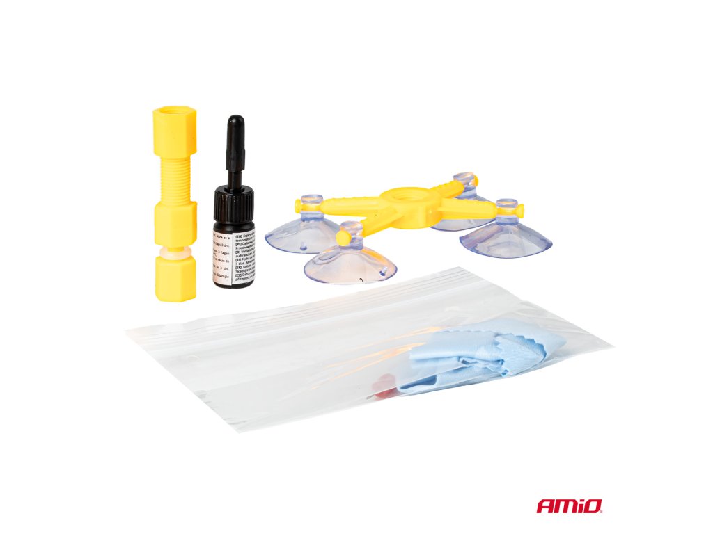 Profesionálna súprava určená na rýchlu a účinnú opravu drobných poškodení automobilových skiel, ako sú odštiepky a praskliny typu „očko“ alebo „hviezdička“. Vďaka aplikátoru s prísavkou je možné presné nanášanie živice bez nutnosti demontáže skla.